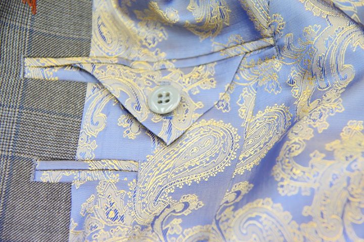 大きめのチェック柄がオシャレなgrayのカノニコ「レディース」スーツお仕上がり品でございます。さて今回はgorgeousなペイズリー柄viscose裏地とスワロフスキーをあしらった水牛のオーダーボタンをコーディネートされておりますね。素敵でございます。私共では女医さんをはじめとする医療関係者の方々に加え、キャリアウーマンの方々からも少なからずレディーススーツのご注文を賜っております。ご興味のございます方はご検討賜りますと幸いでございます。