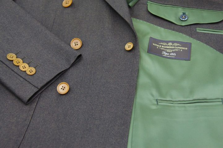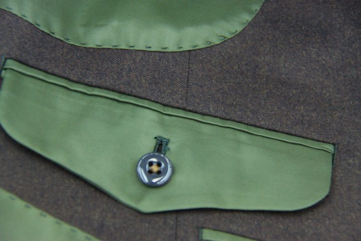 Brownのカノニコ「フランネルsuper120s」ジャケットお仕上がり品でございます。このレーベルはweightが270g/mとフランネルとしては軽量でございますためか、極めてしなやかで柔らかいです。さらにシワになり難く耐久性もございますので使い勝手も抜群です。さて今回はgreenの裏地とocherのボタンをコーディネートされておりますね。素敵です。オシャレな一着がお仕立て上がりました。