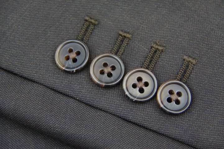 Brownの「カノニコ ペレニアル」スーツお仕上がり品でございます。さて今回は同系色のキュプラ裏地と水牛ボタンをコーディネートされておりますね。素敵でございます。オシャレな一着がお仕立て上りました。