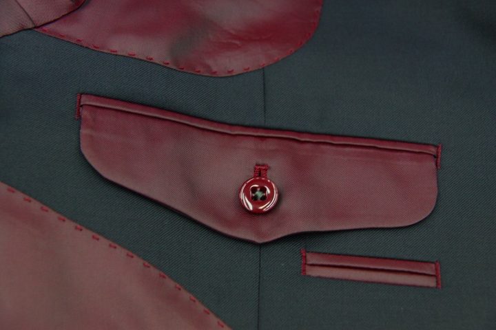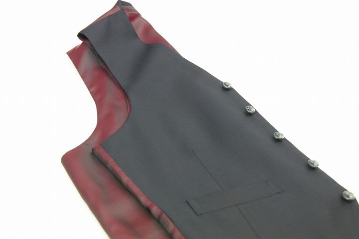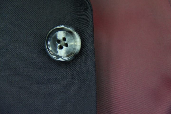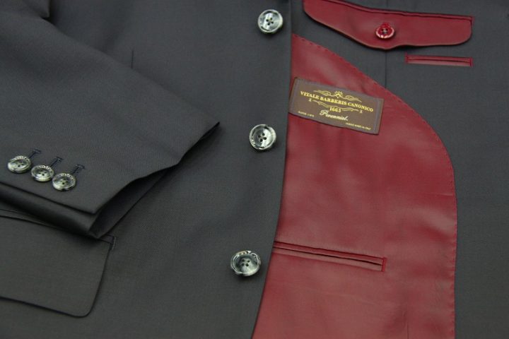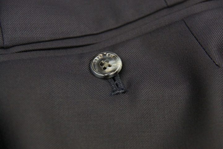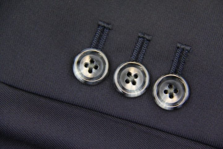 ネイビー無地の「カノニコ ペレニアル」3ピーススーツお仕上がり品でございます。さて今回はbordeauxの裏地とgrayのボタンをコーディネートされておりますね。素敵でございます。オシャレな一着がお仕立て上りました。