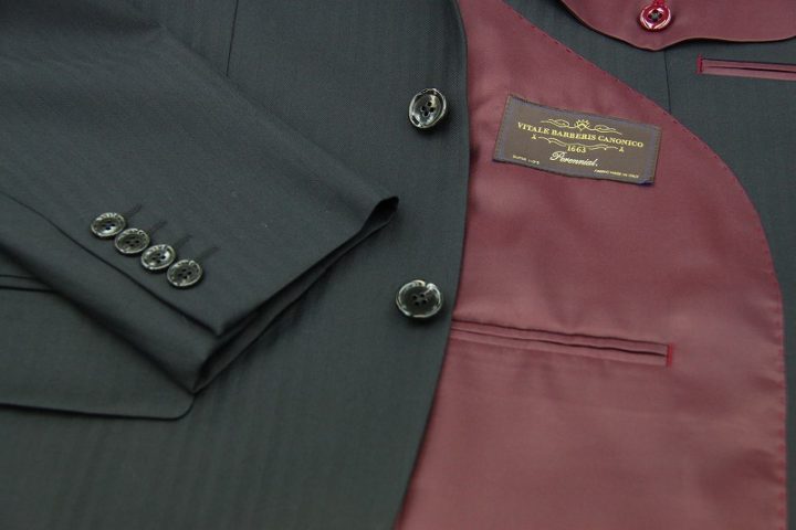 Herringbone柄がオシャレなnavyの「カノニコ ペレニアル」スーツお仕上がり品でございます。さて今回はbordeauxの裏地とnavyのボタンをコーディネートされておりますね。素敵でございます。オシャレな大人の一着がお仕立て上りました。