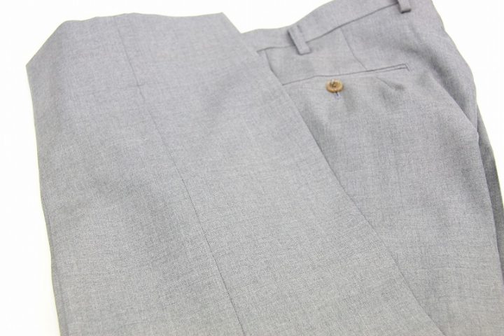 Light grayのカノニコ「ペレニアル」パンツお仕上がり品でございます。Weight260g/m、クリアカットのオールシーズ用生地なので使い勝手も抜群。オススメでございます。ところで最近私共では2タックパンツがとても多くなっております。その理由は…、お察し下さいませ。フフフ。シャープだけれど少しゆとりもある2タック。オススメでございます✨