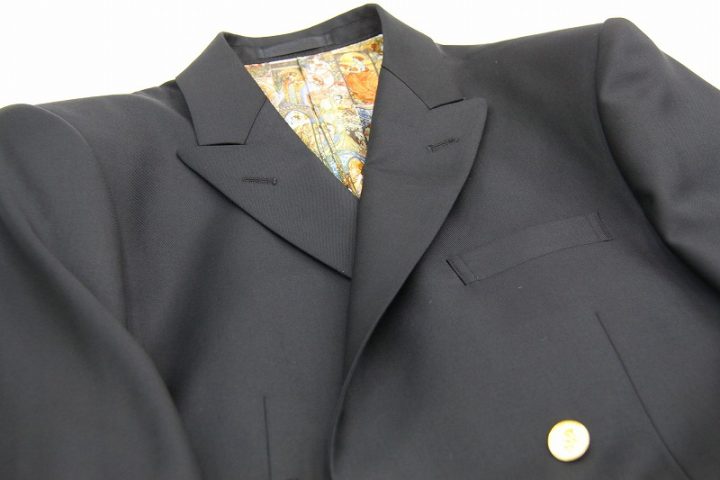 Silkyなブラック無地の「カノニコsuper110s」スーツお仕上がり品でございます。キックボクシング選手の記者会見用スーツです✨さて今回は何と表現すれば良いのかな?fancyな裏地とGoldのボタンをコーディネートされておりますね。素敵でございます。オシャレな一着がお仕立て上りました。