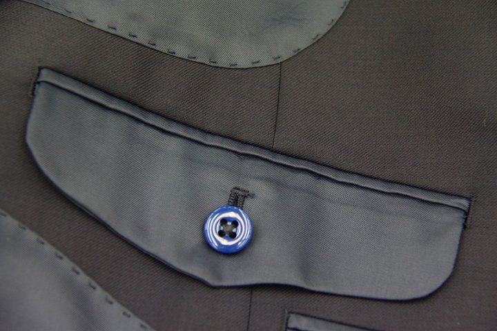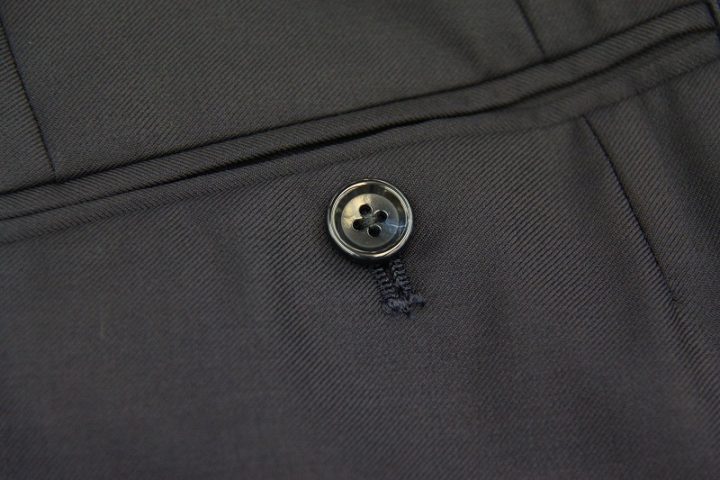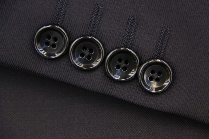 Silkyなネイビー無地の「カノニコsuper110s」スーツお仕上がり品でございます。さて今回は同系色の裏地とボタンをコーディネートされておりますね。シックで素敵でございます。落ち着いた大人の一着がお仕立て上りました。