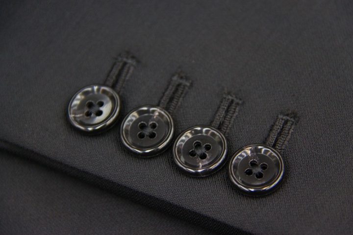 Silkyなネイビー無地の「カノニコsuper110s」スーツお仕上がり品でございます。さて今回は同系色の裏地とボタンをコーディネートされておりますね。シックで素敵でございます。落ち着いた大人の一着がお仕立て上りました。