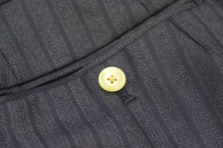 シャドーストライプ柄がお洒落なnavyのゼニア「エレクタ」スーツお仕上り品でございます。さて今回はivory whiteの裏地とボタンをコーディネートされておりますね。素敵でございます。上質な大人の一着がお仕立て上がりました。
