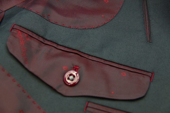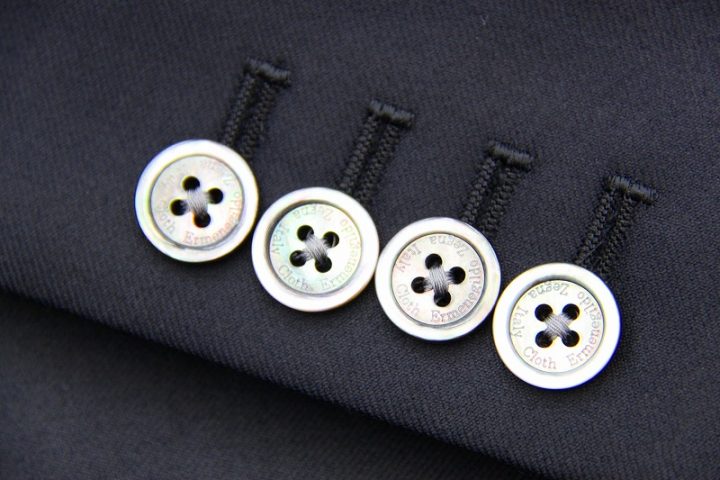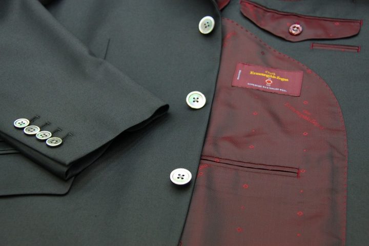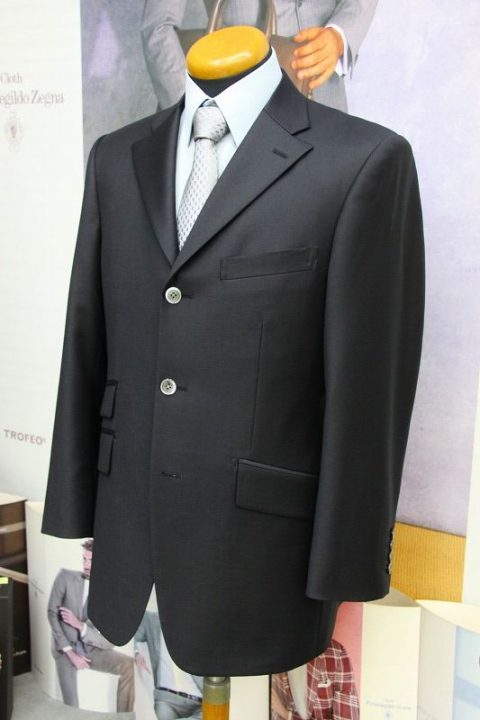 Silkyなブラック無地のゼニア「Australian wool」3ピーススーツお仕上り品でございます。さて今回はbordeauxのゼニア純正ロゴ入りキュプラ裏地とblackのシェルボタンをコーディネートされておりますね。素敵でございます。上質な大人の一着がお仕立て上がりました。