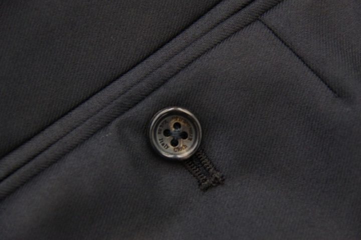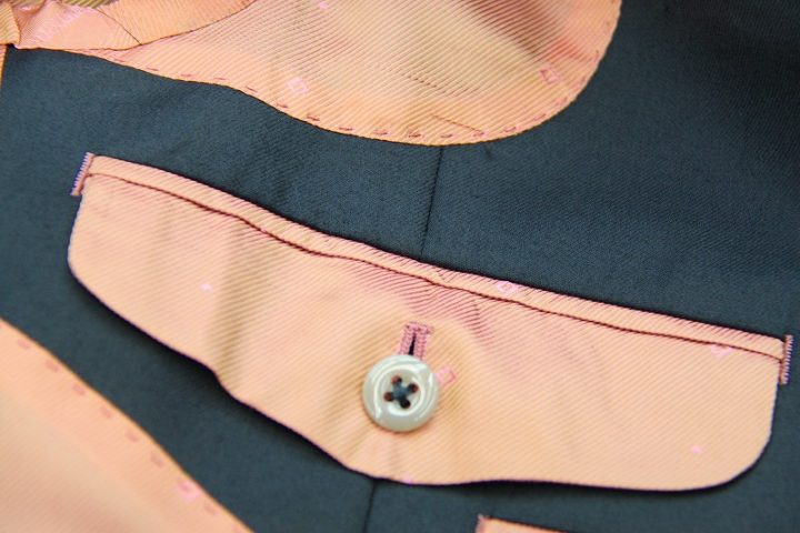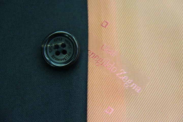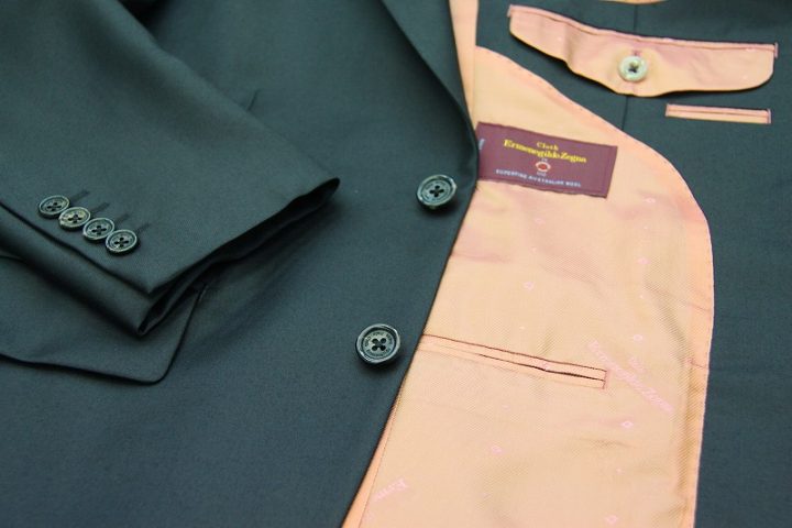 Silkyなブラック無地のゼニア「Australian wool」スーツお仕上り品でございます。さて今回はサーモンピンクのゼニア純正ロゴ入りキュプラ裏地と水牛ボタンをコーディネートされておりますね。素敵でございます。上質な大人の一着がお仕立て上がりました。