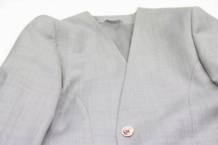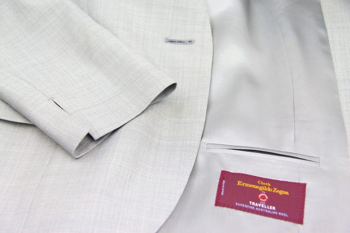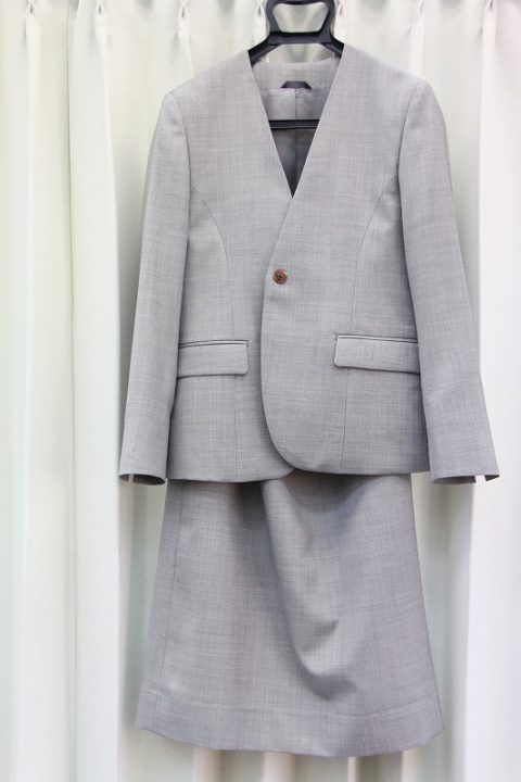 シルキーなlight grayのゼニア「トラベラー」レディーススーツお仕上がり品でございます。この綺麗な発色にはベースとなる原毛のQualityが大きく影響します。ある意味ゼニアだからこその発色と申しましても過言ではないかと存じます。さて今回は同系色キュプラ裏地とbrownのシェルボタンをコーディネートされておりますね。素敵でございます。私共では女医さんをはじめとします医療関係者の方々に加え、最近ではキャリアウーマンの方々からも少なからずレディーススーツのご注文を賜っております。ご興味のございます方はご検討賜りますと幸いでございます。