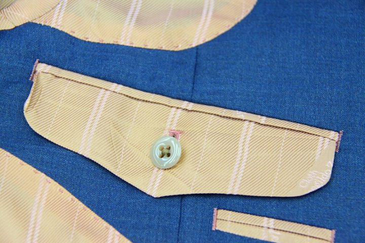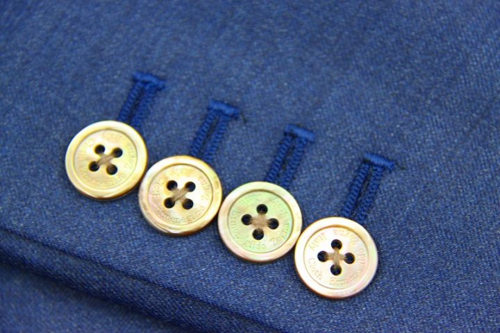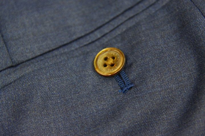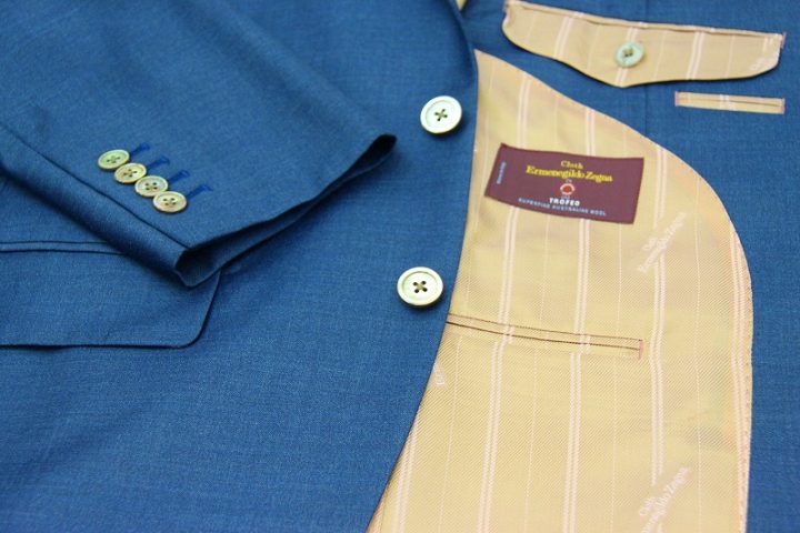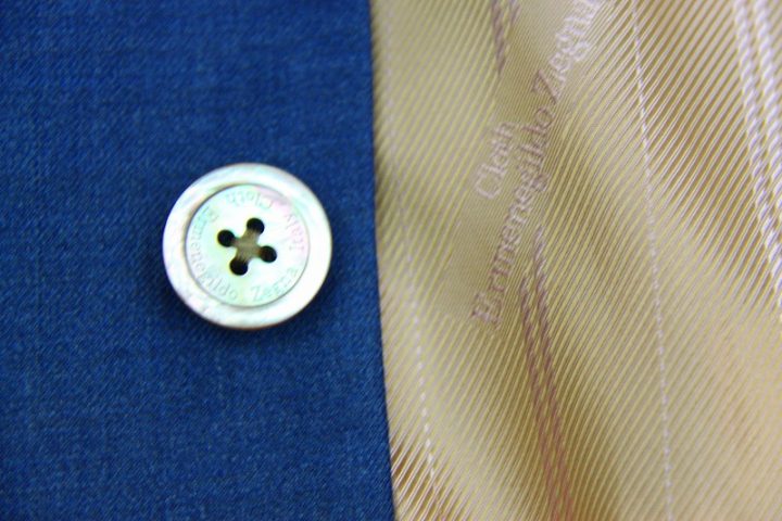 Silkyなブルーグレー無地のゼニア「トロフェオ」スーツお仕上り品でございます。さて今回はサーモンピンクのゼニア純正ロゴ入りキュプラ裏地とブラウンのshellボタンをコーディネートされておりますね。素敵でございます。上質な大人の一着がお仕立て上がりました。
