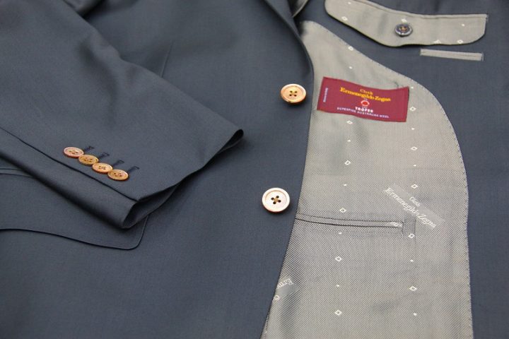 Silkyなチャコールグレー無地のゼニア「トロフェオ」スーツお仕上り品でございます。さて今回はgrayのゼニア純正ロゴ入りキュプラ裏地とbrownのシェルボタンをコーディネートされておりますね。素敵でございます。上質な大人の一着がお仕立て上がりました。