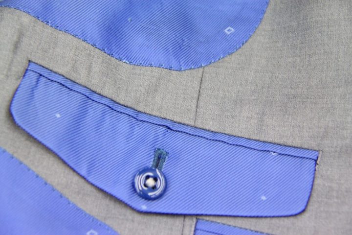 Light gray無地のゼニア「トロフェオ」スーツお仕上り品でございます。さて今回は鮮やかなblueのゼニア純正ロゴ入りキュプラ裏地とItaly製ボタンをコーディネートされておりますね。素敵でございます。上質な大人の一着がお仕立て上がりました。