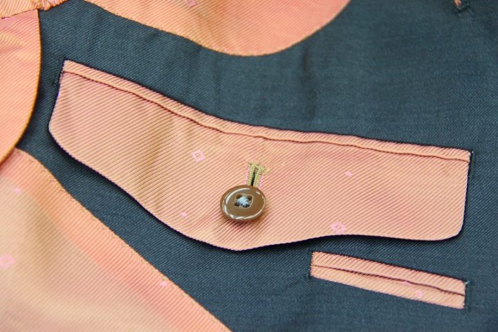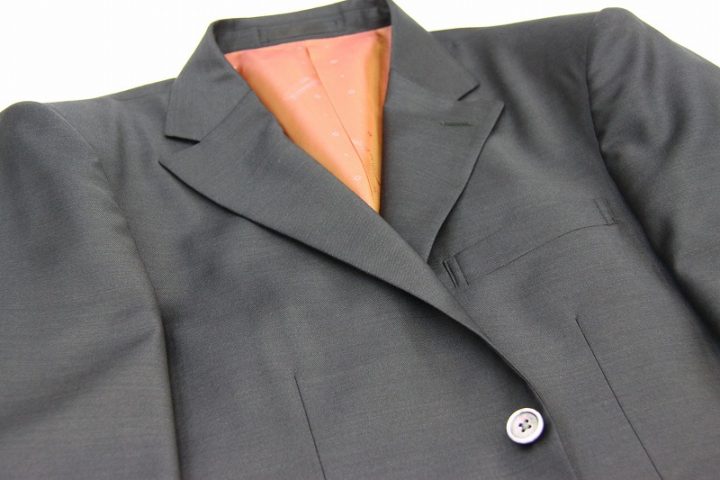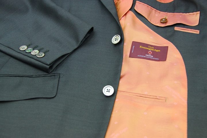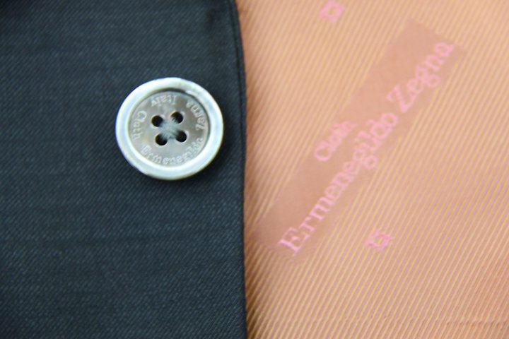 Silkyなチャコールグレー無地のゼニア「トロフェオ」スーツお仕上り品でございます。さて今回はサーモンピンクのゼニア純正ロゴ入りキュプラ裏地とブラックのshellボタンをコーディネートされておりますね。素敵でございます。上質な大人の一着がお仕立て上がりました。