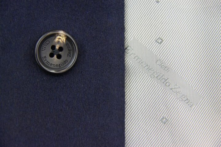 Navyのゼニア「ピュアカシミアコート」お仕上り品でございます(Weightは驚異の510g/m✨)。さて今回はシルバーグレーのゼニア純正ロゴ入りキュプラ裏地と水牛ボタンをコーディネートされておりますね。素敵です。おかげ様で私共では今シーズン、いつにも増して多くのカシミアコートご注文を賜っております。ご興味のございます方はご検討賜りますと幸いでございます。