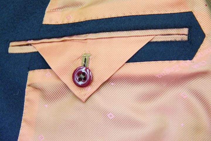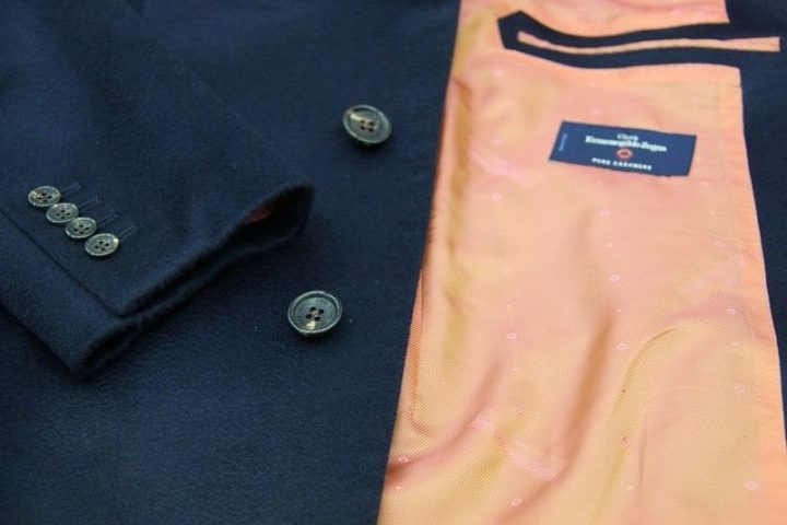 Navyのゼニア「ピュアカシミアコート」お仕上り品でございます(Weightは驚異の510g/m✨)。さて今回はサーモンピンクのゼニア純正ロゴ入りキュプラ裏地と水牛ボタンをコーディネートされておりますね。素敵です。おかげ様で私共では今シーズン、いつにも増して多くのカシミアコートご注文を賜っております。ご興味のございます方はご検討賜りますと幸いでございます。