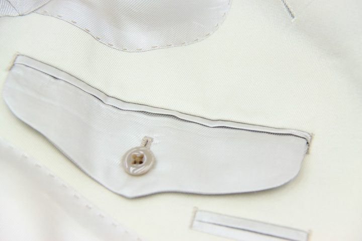 Ivory whiteのゼニア「ピュアコットン」ジャケットお仕立て上り品でございます。極上のタッチと美しい発色…。その質感にはもはやため息が出るほどです。ゼニアはhigh quality&eleganceにかけては右に出るものがいないのではと感じます。さて今回は同系色のキュプラ裏地とbrownのイタリー製ボタンをコーディネートされておりますね。素敵でございます。エレガントな一着がお仕立て上がりました。