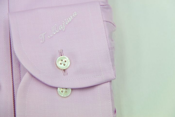菖蒲色(あやめいろ)とでも申し上げれば良いでしょうか、何ともエレガントなカラーのThomasmason long sleeve shirtお仕上がり品でございます。さて今回はwhiteの刺繍ネームとwhiteのシェルボタンをコーディネートされておりますね。シックで素敵でございます。英国王室御用達ブランド「トーマスメイソン」。ご興味のございます方はご検討賜りますと幸いでございます。