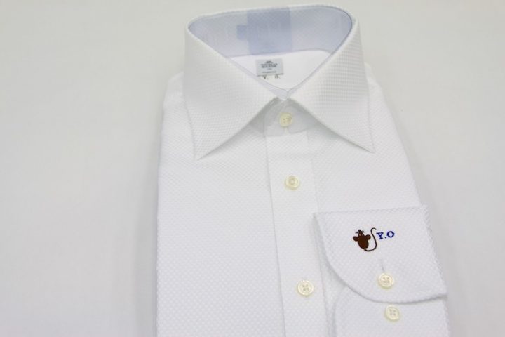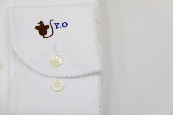 素材感のある織りがオシャレなホワイトのThomasmason long sleeve shirtお仕上がり品でございます。さて今回は”かわいい”brown mouseの刺繍とwhiteのシェルボタンをコーディネートされておりますね。素敵でございます。英国王室御用達ブランド「トーマスメイソン」。ご興味のございます方はご検討賜りますと幸いでございます。