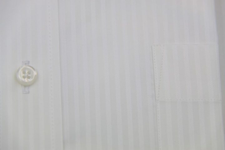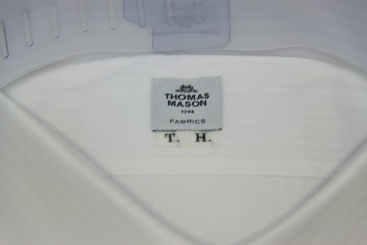 Silkyなシャドーストライプ柄のThomasmason white shirtお仕上がり品でございます。さて今回は純白の3㎜厚ボタンをコーディネートされておりますね。シックで素敵でございます。英国王室御用達ブランド「トーマスメイソン」。ご興味のございます方はご検討賜りますと幸いでございます。