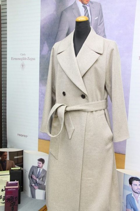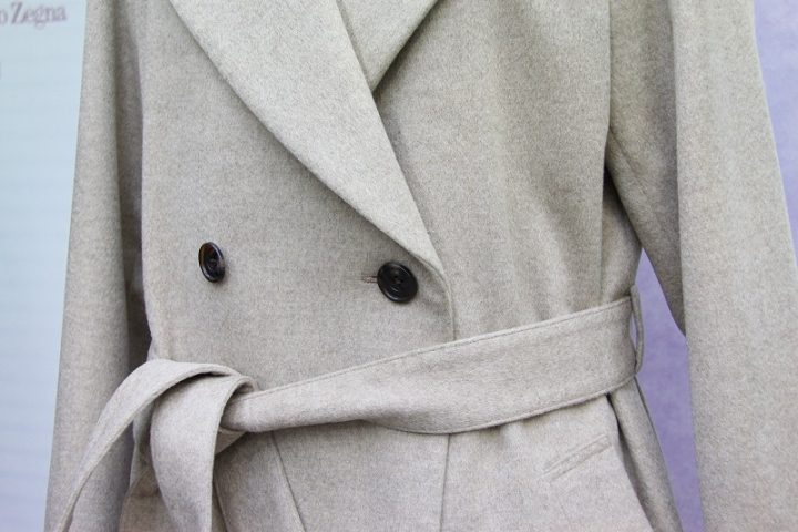 都内某一流百貨店取り扱いのピュアカシミア生地でお仕立て致しましたレディースコートお仕上がり品でございます。オートミールカラーがelegantで美しいですね。さて今回は同系色のキュプラ裏地と水牛ボタンをコーディネートされております。素敵でございます✨ダウンにも負けないほど暖かい極上のピュアカシミア。ご興味のございます方はご検討賜りますと幸いでございます。