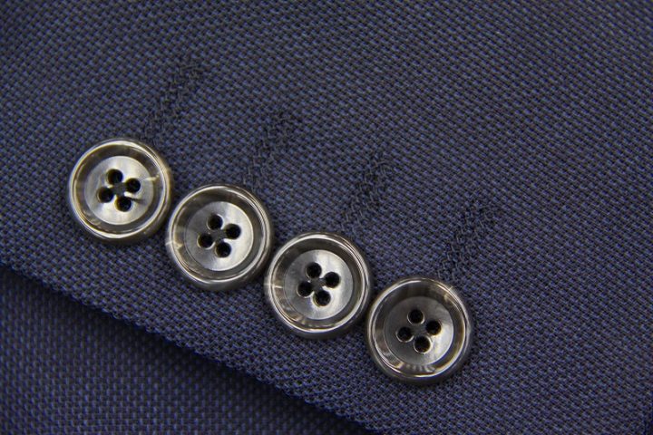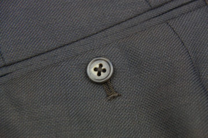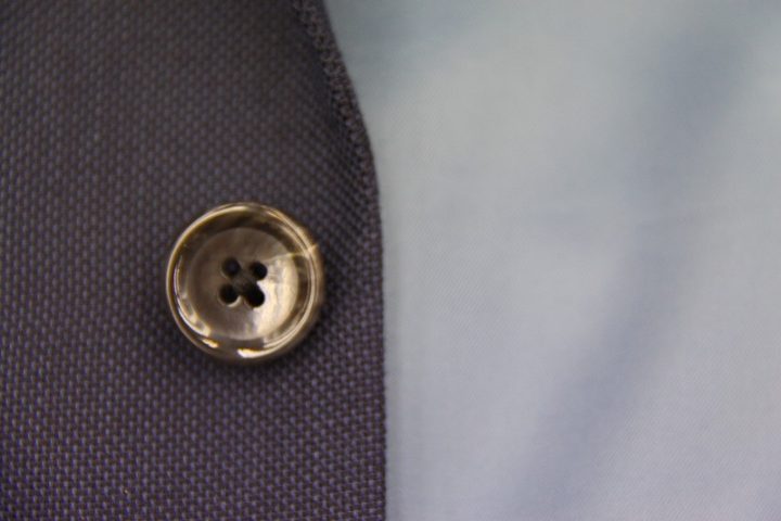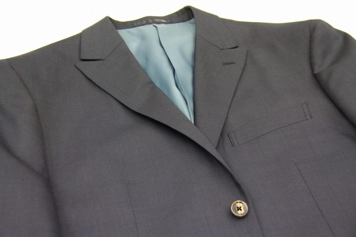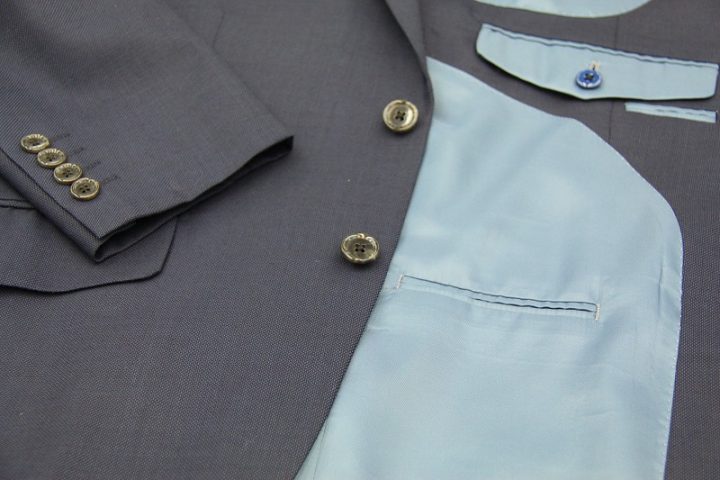 私共で人気のカラー「ブルーグレー」のミユキ毛織ピュアウールスーツお仕上がり品でございます。さて今回は同系色の裏地とbrownのボタンをコーディネートされておりますね。素敵でございます。上質な国産ウール、ご興味のございます方はご検討賜りますと幸いでございます。