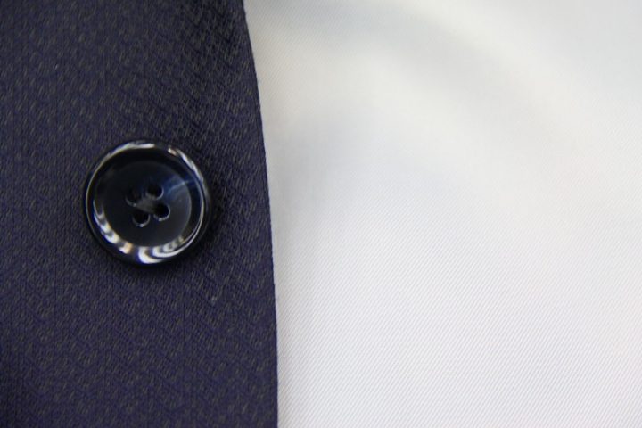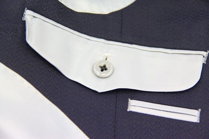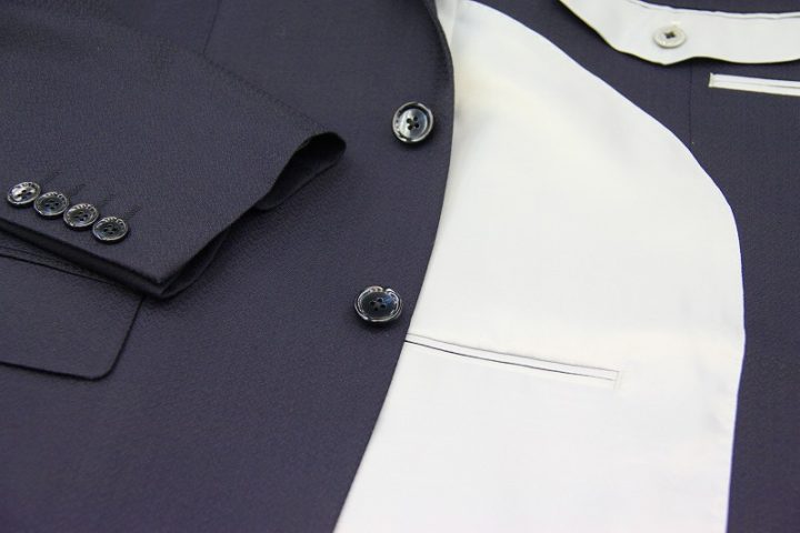 繊細な織り柄がオシャレなnavyのミユキ毛織ピュアウールスーツお仕上がり品でございます。さて今回はivory whiteの裏地とnavyのボタンをコーディネートされておりますね。素敵でございます。上質な国産ウール、ご興味のございます方はご検討賜りますと幸いでございます。