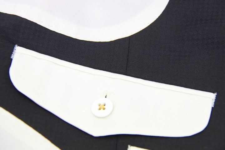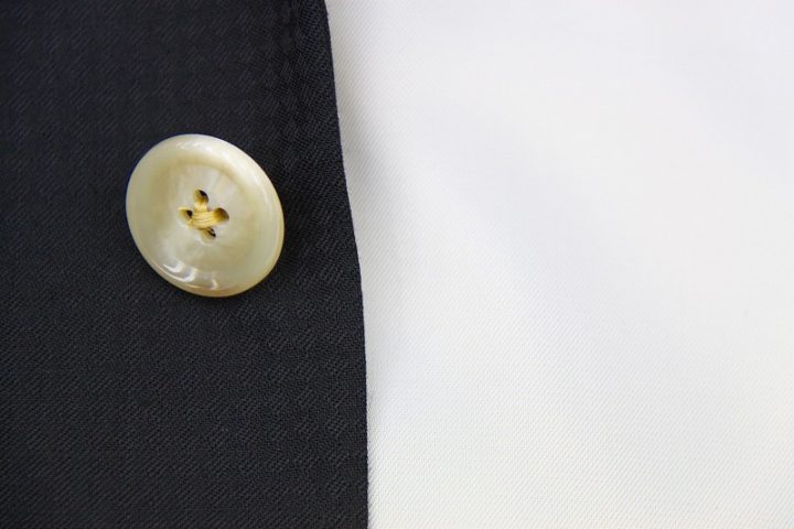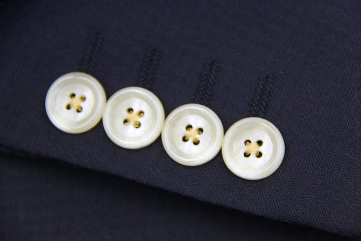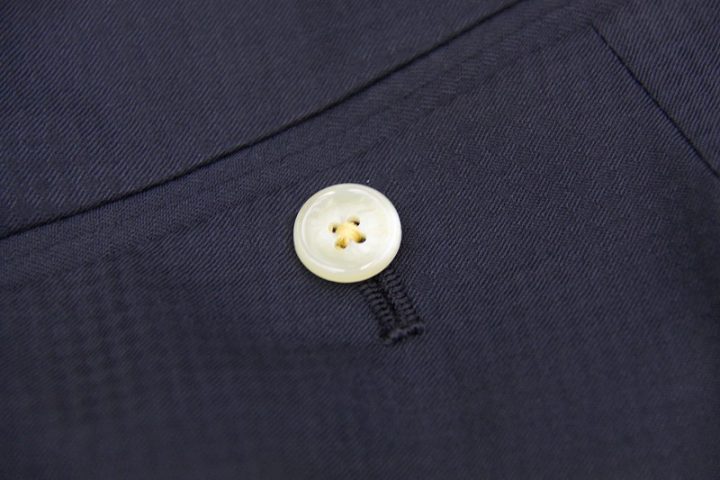 マイクロチェックがお洒落なnavyのミユキ毛織ピュアウールスーツお仕上がり品でございます。さて今回はivory whiteの裏地とボタンをコーディネートされておりますね。素敵でございます。上質な国産ウール、ご興味のございます方はご検討賜りますと幸いでございます。