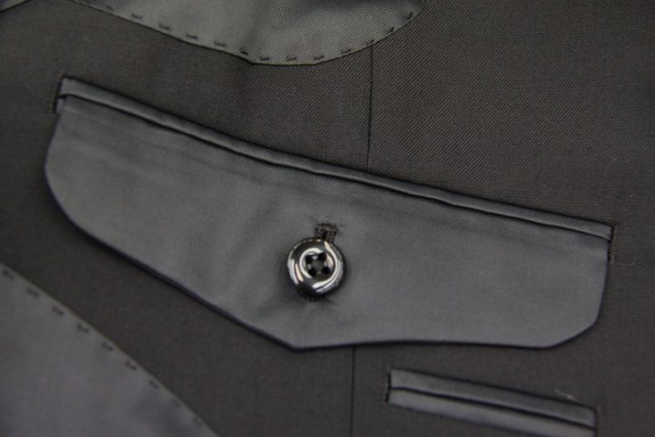 おかげ様で最近ミユキ毛織とカノニコの礼服ご注文及びお仕上がり品の到着が大変多くなっております。ありがたいことでございます。さて本日は国産最高級毛織物メーカー「ミユキ毛織」の礼服お仕上がり品でございます。まさに漆黒と申し上げても過言ではなさそうです。さて今回はブラックの裏地とボタンをコーディネートされておりますね。最近私共では上着の袖裏やパンツの腰裏に白を使用する「礼服仕立て」ではなく、通常のお仕立てにされる方が多いように感じます。黄ばみ防止の意味合いもあるのかな?着用シーンに応じてご提案させていただきたいと思います。