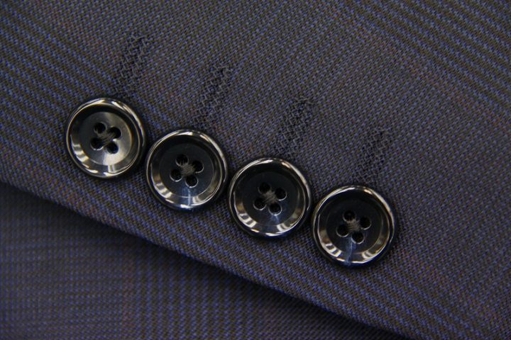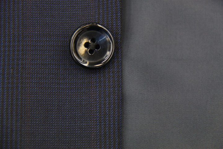 シャドーチェック柄がお洒落なnavyの「ミユキ毛織」ピュアウールスーツお仕上がり品でございます。さて今回は同系色の裏地とボタンをコーディネートされておりますね。シックで素敵でございます。上質な国産ウール、ご興味のございます方はご検討賜りますと幸いでございます。
