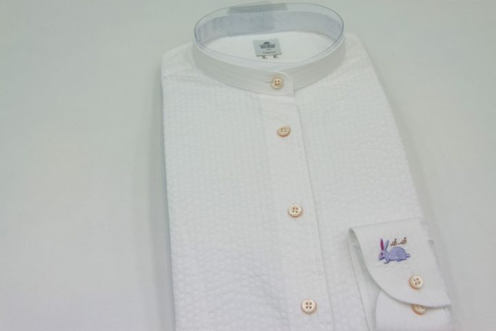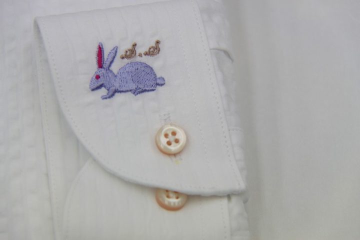 お洒落なサッカー織りのThomasmason long sleeve shirtお仕上がり品でございます。さて今回は”かわいい”rabbitの刺繍とsandwichボタンをコーディネートされておりますね。素敵でございます。英国王室御用達ブランド「トーマスメイソン」。ご興味のございます方はご検討賜りますと幸いでございます。
