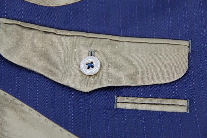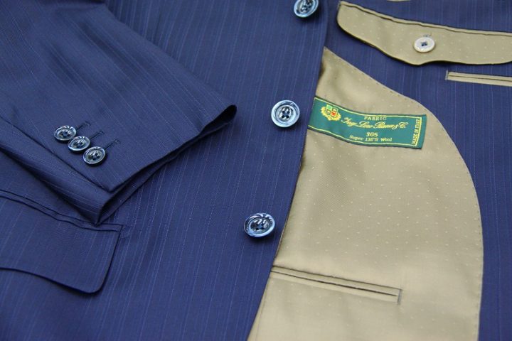 Silkyなネイビーの「ロロピアーナ365」3ピーススーツお仕上がり品でございます。さて今回はベージュのpin dotキュプラ裏地とネイビーのItaly製ボタンをコーディネートされておりますね。素敵でございます。それにしてもロロピアーナ365のグリーンタグはハイクオリティでございます。ご興味のございます方はご検討賜りますと幸いでございます。