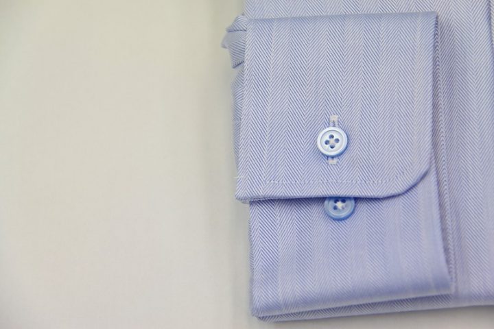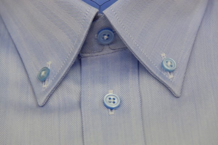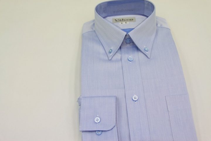 Herringbone柄がオシャレなlight blueの国産long sleeve shirtお仕上がり品でございます。さて今回は同系色のボタンをコーディネートされておりますね。シックで素敵でございます。上質な国産シャツ。ご興味のございます方はご検討賜りますと幸いでございます。