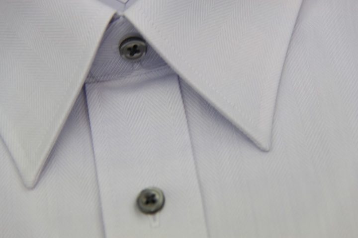 Herringbone柄がオシャレなlight purpleの国産long sleeve shirtお仕上がり品でございます。さて今回は黒蝶貝のボタンをコーディネートされておりますね。素敵でございます。上質な国産シャツ。ご興味のございます方はご検討賜りますと幸いでございます。
