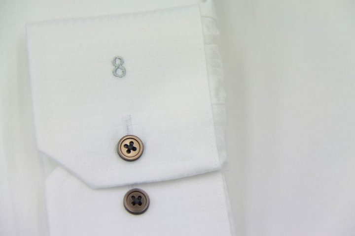 純白の国産long sleeve shirtお仕上がり品でございます。さて今回はシルバーグレーの刺繍ネームとブラウンのボタンをコーディネートされておりますね。素敵でございます。上質な国産シャツ。ご興味のございます方はご検討賜りますと幸いでございます。