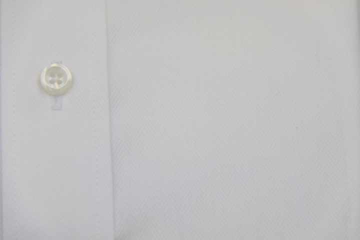 繊細な織り柄がオシャレなwhiteの国産long sleeve shirtお仕上がり品でございます。さて今回は純白の3㎜厚ボタンをコーディネートされておりますね。シックで素敵でございます。上質な国産シャツ。ご興味のございます方はご検討賜りますと幸いでございます。