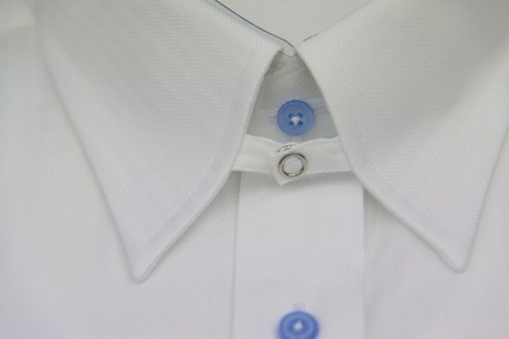 Herringbone柄がオシャレなwhiteの国産long sleeve shirtお仕上がり品でございます。さて今回はbordeauxの刺繍ネームとlight blueのボタンをコーディネートされておりますね。素敵でございます。上質な国産シャツ。ご興味のございます方はご検討賜りますと幸いでございます。