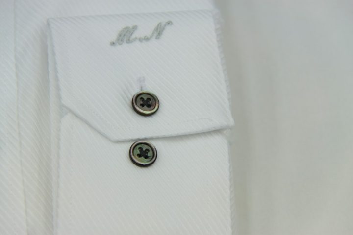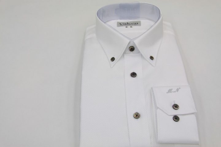 Silkyなホワイトの国産long sleeve shirtお仕上がり品でございます。さて今回はシルバーグレーの刺繍ネームと黒蝶貝のボタンをコーディネートされておりますね。素敵でございます。上質な国産シャツ。ご興味のございます方はご検討賜りますと幸いでございます。