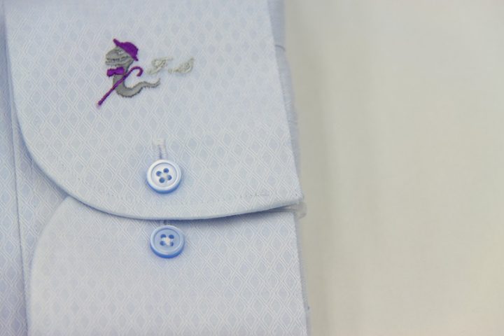綺麗なlight blueの国産long sleeve shirtお仕上がり品でございます。さて今回は”かわいい”snakeの刺繍をコーディネートされておりますね。最近私共では国産シャツでも刺繍が花盛りです(今まではトーマスメイソン+刺繍が多かったかも)。上質な国産シャツ。ご興味のございます方はご検討賜りますと幸いでございます。