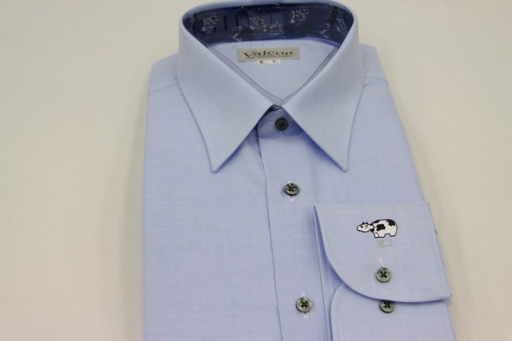 素材感のある織りがオシャレなlight blueの国産long sleeve shirtお仕上がり品でございます。さて今回は”かわいい”cow-ホルスタイン-の刺繍とshellボタンをコーディネートされておりますね。最近私共では国産シャツでも刺繍が花盛りです(今まではトーマスメイソン+刺繍が多かったかも…最近意識的に国産シャツ+刺繍を掲載しています✨)。上質な国産シャツ。ご興味のございます方はご検討賜りますと幸いでございます。
