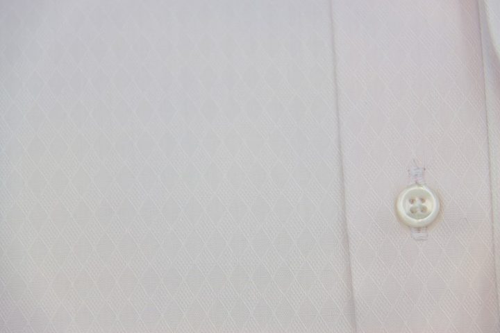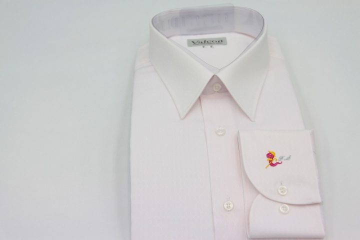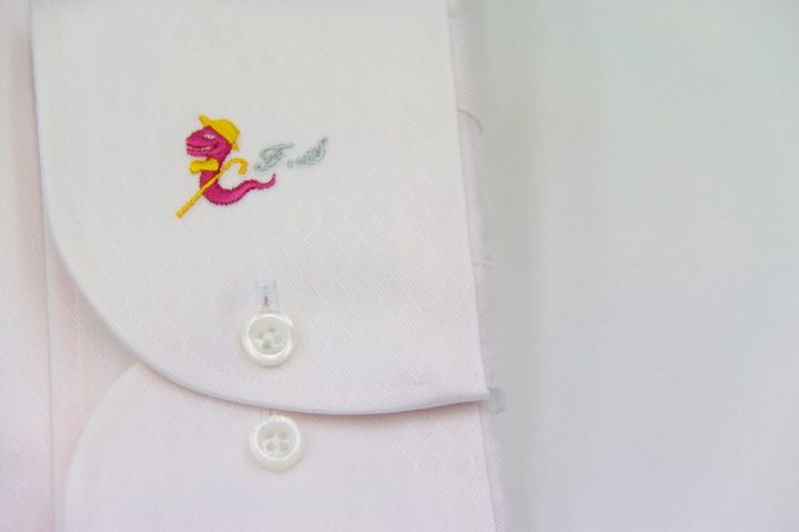 Light pinkの国産long sleeve shirtお仕上がり品でございます。さて今回は”かわいい”pink snakeの刺繍と3㎜厚の純白ボタンをコーディネートされておりますね。素敵です。上質な国産シャツ。ご興味のございます方はご検討賜りますと幸いでございます。