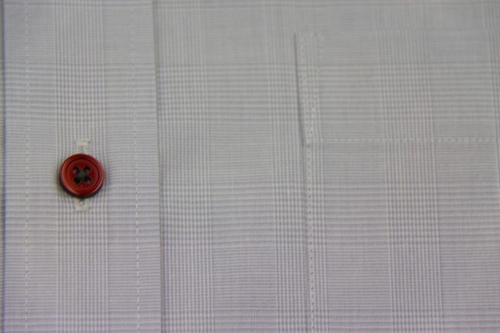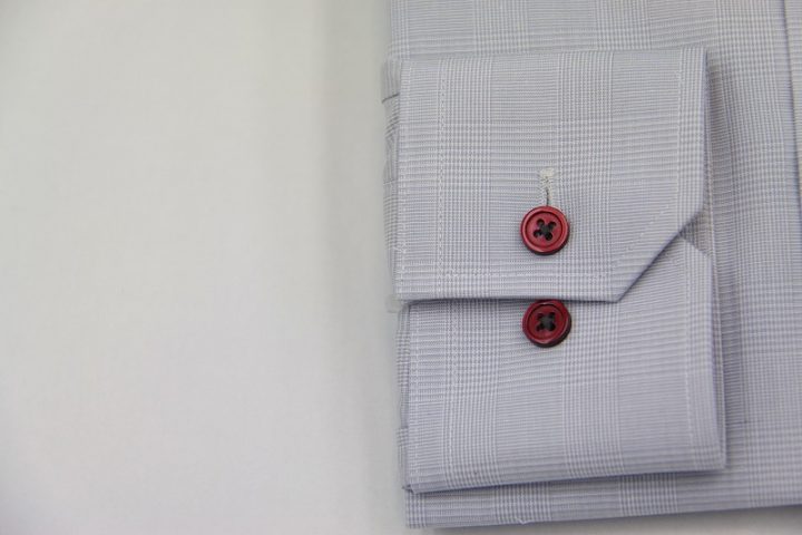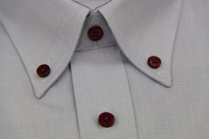シャドーチェック柄がお洒落なgrayの国産long sleeve shirtお仕上がり品でございます。さて今回はbordeauxのボタンをコーディネートされておりますね。素敵な差し色でございます。上質な国産シャツ。ご興味のございます方はご検討賜りますと幸いでございます。