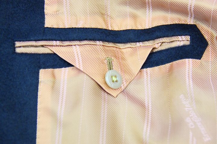 ゼニア「ピュアカシミアコート」お仕上り品でございます。おかげ様で最近私共ではチェスターコートに加えアルスターコート(≒ポロコート)も人気がございますが、これはカジュアル用でご注文いただくケースも少なくないからに他なりません。大きな衿、フレームドパッチポケット、バックベルトなど随所にこだわりのあるスタイルでございます。さて今回は「極上」のネイビー生地にサーモンピンクのゼニア純正ロゴ入りキュプラ裏地と水牛ボタンをコーディネートされておりますね。素敵です。おかげ様で私共では今シーズン、いつにも増して多くのカシミアコートご注文を賜っております。ご興味のございます方はご検討賜りますと幸いでございます。