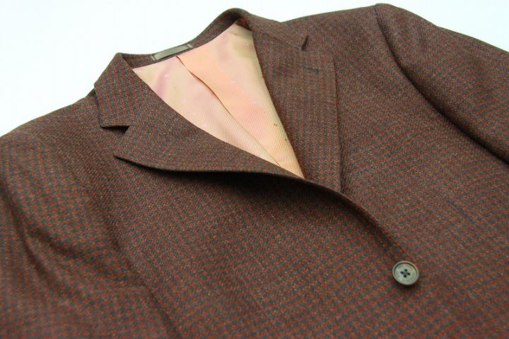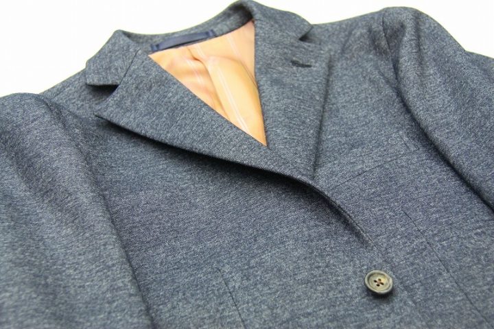 また秋冬物でございますと定番のウール素材に加え、存在感と柔らかさを兼ね備えたカシミア100%も人気がございます。重厚でありながらも威圧感を与えないその知性的な佇まいは新たなダンディズムを表現しているようにも感じます。秋冬物のジャケットでは稀に「中にセーターを着たい」とおっしゃる方もいらっしゃいますが、アームホールのサイズが大きく変わってしまうため極力ご遠慮頂いております。
