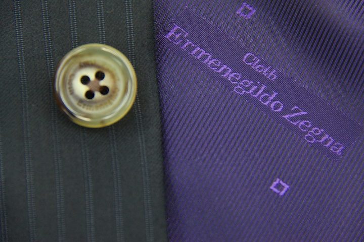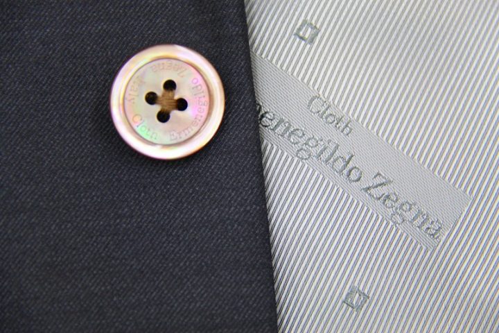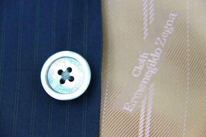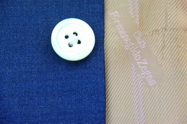 ゼニアのロゴの入ったボタン(税込4,500円~)や裏地(税込8,500円~)はオプションでございますが、こちらは他にも魅力的な商品があるため、あえてオプションとさせて頂いております。