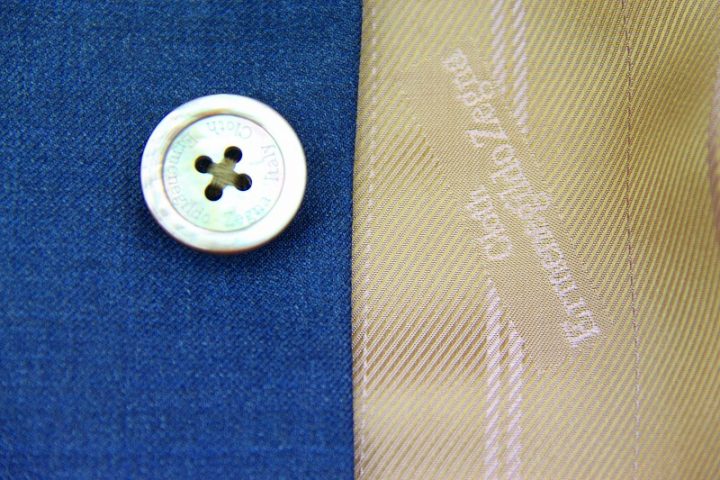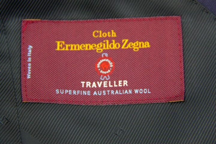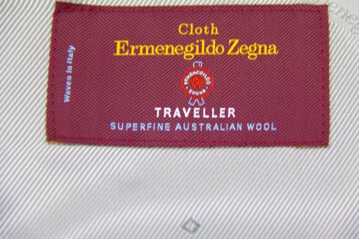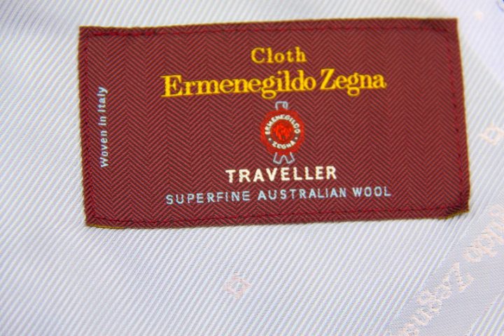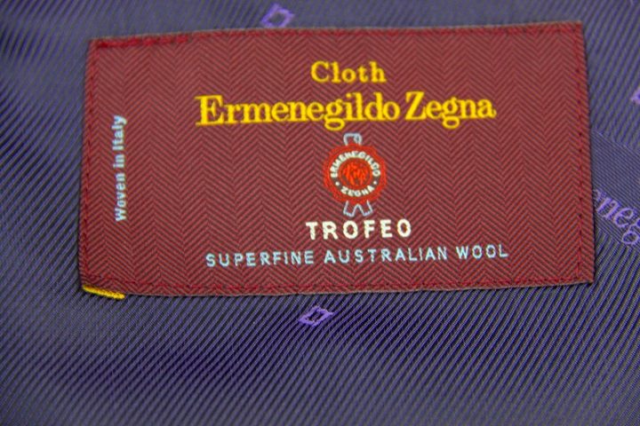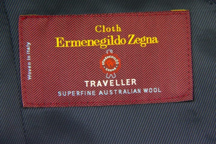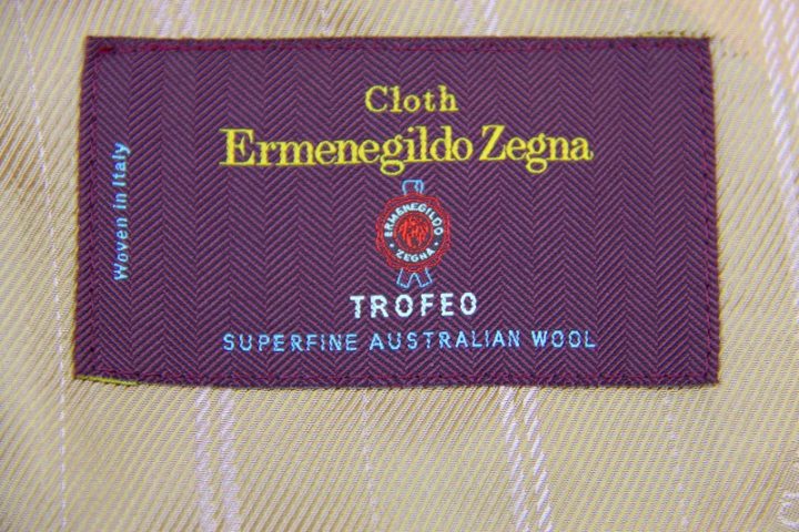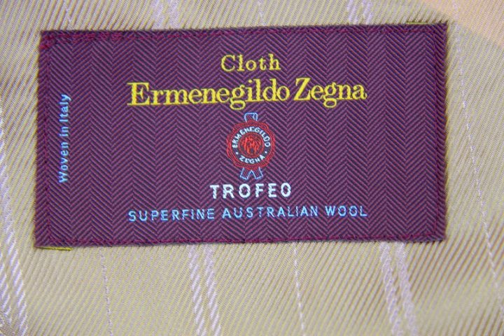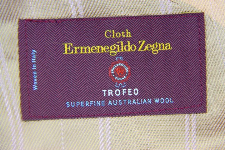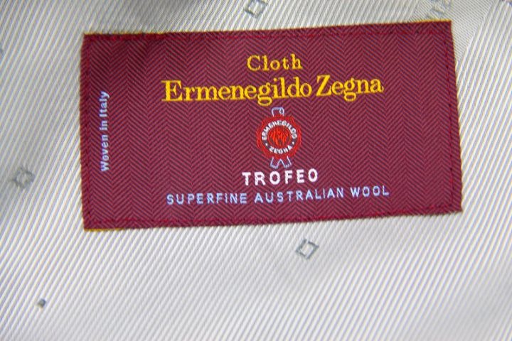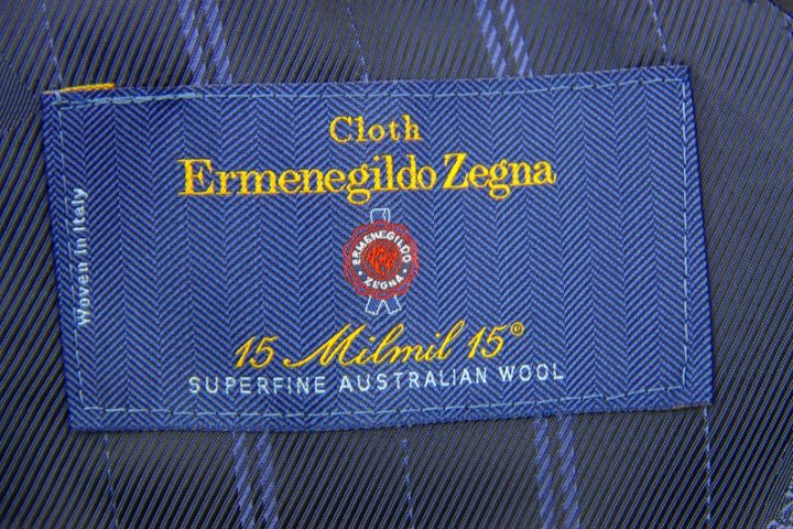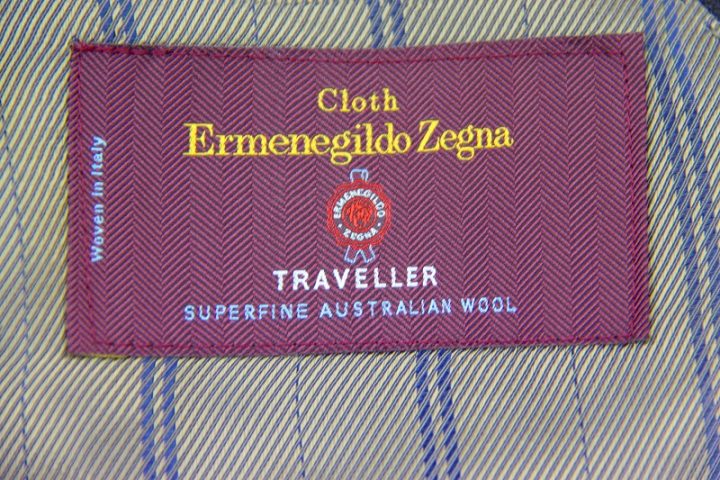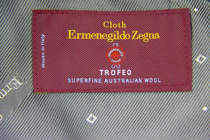 ところでこのゼニアは正規ルートで仕入れた生地でお仕立てした場合の相場は30~50万円位でしょうか。正規ルートのオーダー用のゼニアのタグは「レッドラベル」でございまして既製品や並行輸入品の「ブルーラベル」とは明確に分けられております。正規ルート品にはゼニアのロゴの入ったボタンや裏地のコレクションも用意されております。