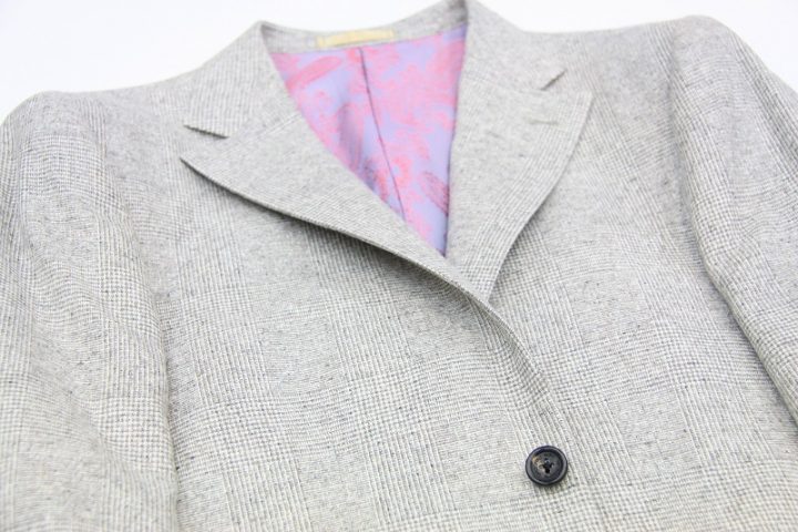 また秋冬物でございますと定番のウール素材に加え、存在感と柔らかさを兼ね備えたカシミア100%も人気がございます。重厚でありながらも威圧感を与えないその知性的な佇まいは新たなダンディズムを表現しているようにも感じます。秋冬物のジャケットでは稀に「中にセーターを着たい」とおっしゃる方もいらっしゃいますが、アームホールのサイズが大きく変わってしまうため極力ご遠慮頂いております。